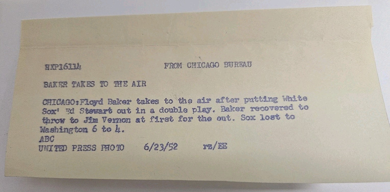 Capture a piece of baseball history with the 6/23/52 original press photo featuring the Chicago White Sox facing the Washington Nationals. A true vintage gem, this photograph showcases the era's iconic players, making it a must-have for collectors and fans alike.