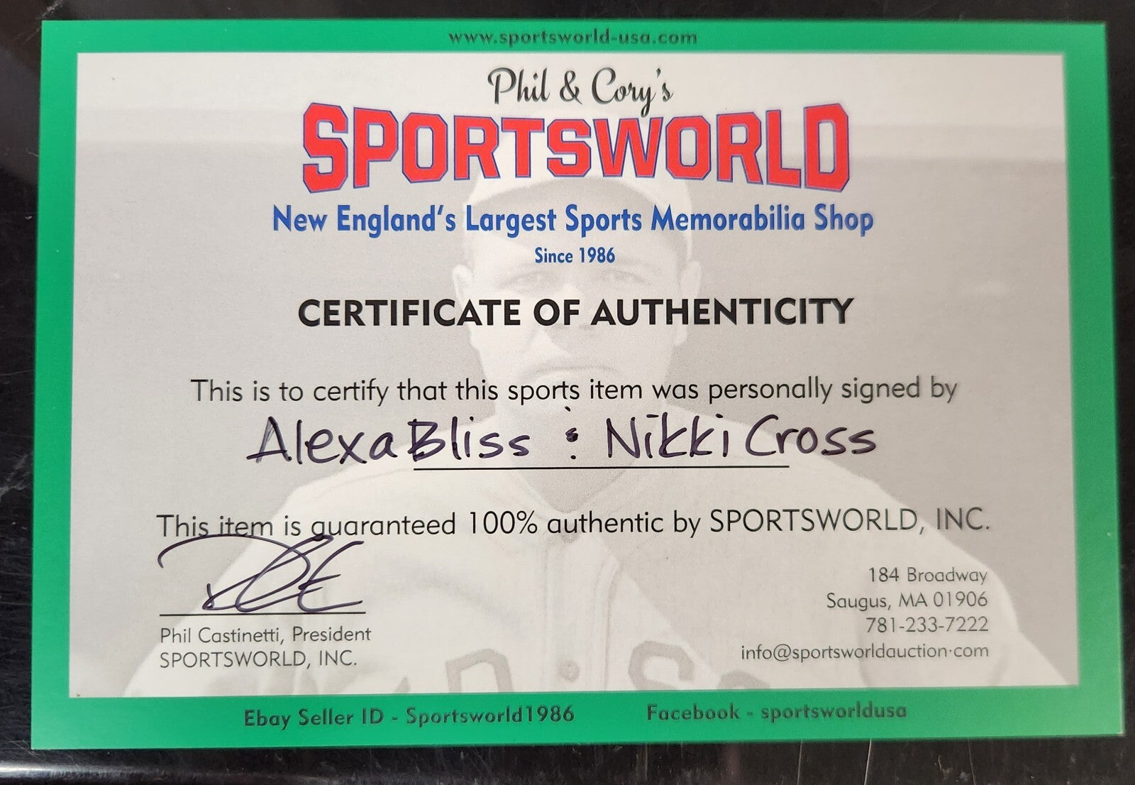 This is an incredible 8x10 photo of Alexa Bliss and Nikki Cross, signed by both wrestlers. The photo is a limited edition from the WWE Summer Slam series, with only 33 copies available. It comes with a Certificate of Authenticity to guarantee its originality.
