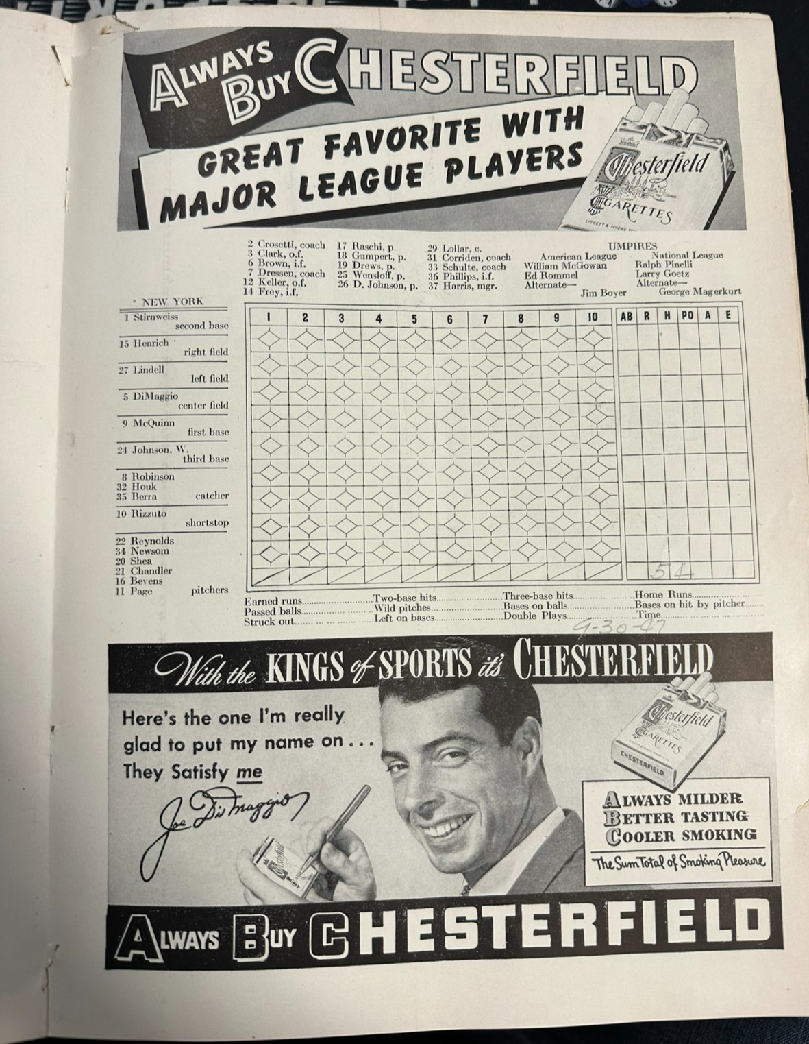 1947 New York Yankees & Brooklyn Dodgers Program Jackie Robinson