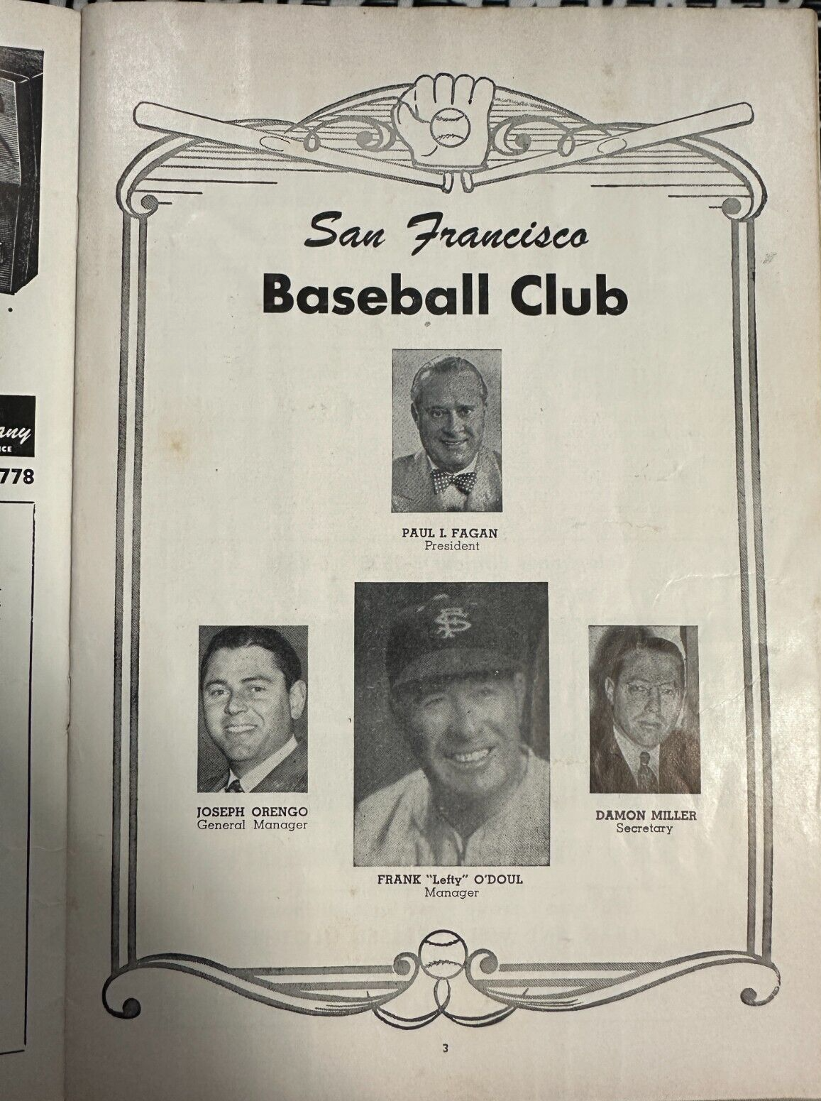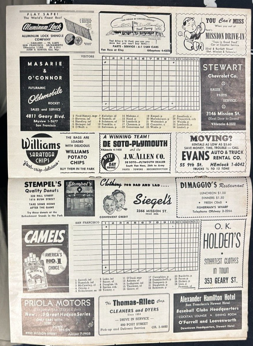 1951 San Francisco Seals Vs the Hollywood Stars Baseball Program PCL