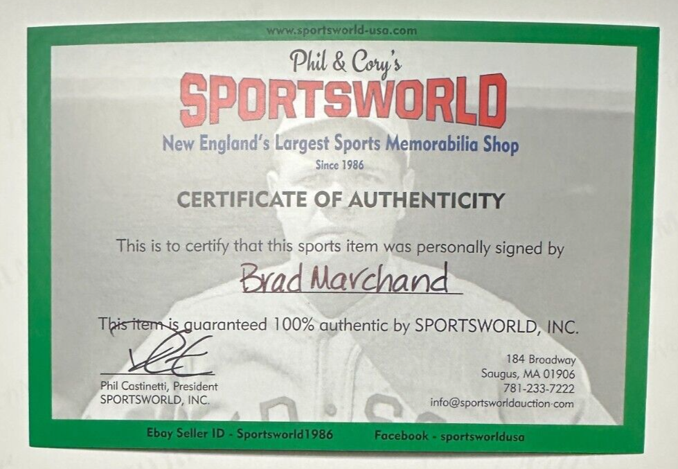 We're offering 8x10 photo autographed by Boston Bruins Captain Brad Marchand. It comes with a Hologram Issued by Marchand Authentic as well as a COA Issued by Sportsworld, New England's Largest Sports Memorabilia Shop and his signature is guaranteed to be 100% authentic.