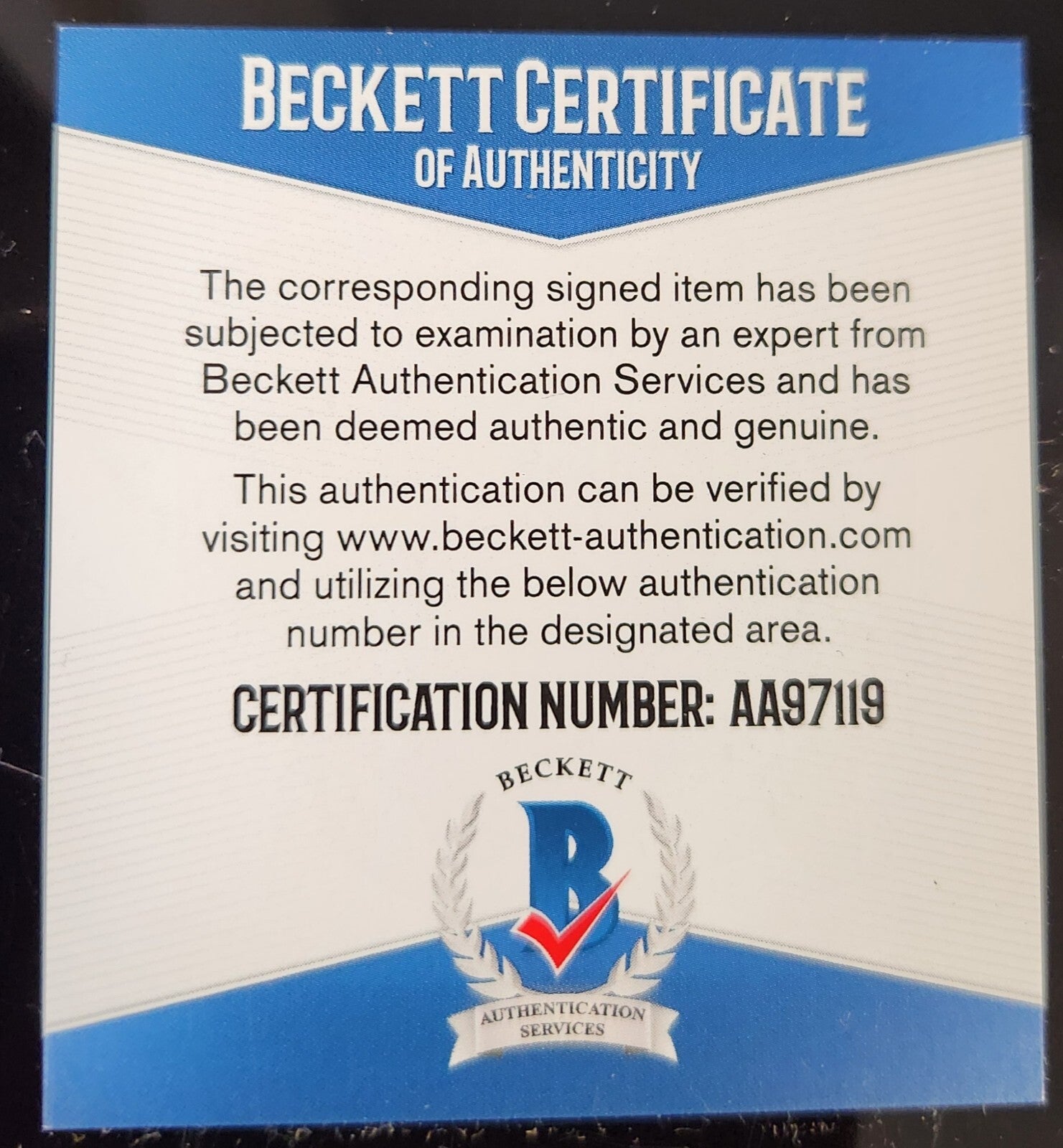 Note there is also a facsimile signature on the bottom of the photo. Please refer to our pictures to be sure.