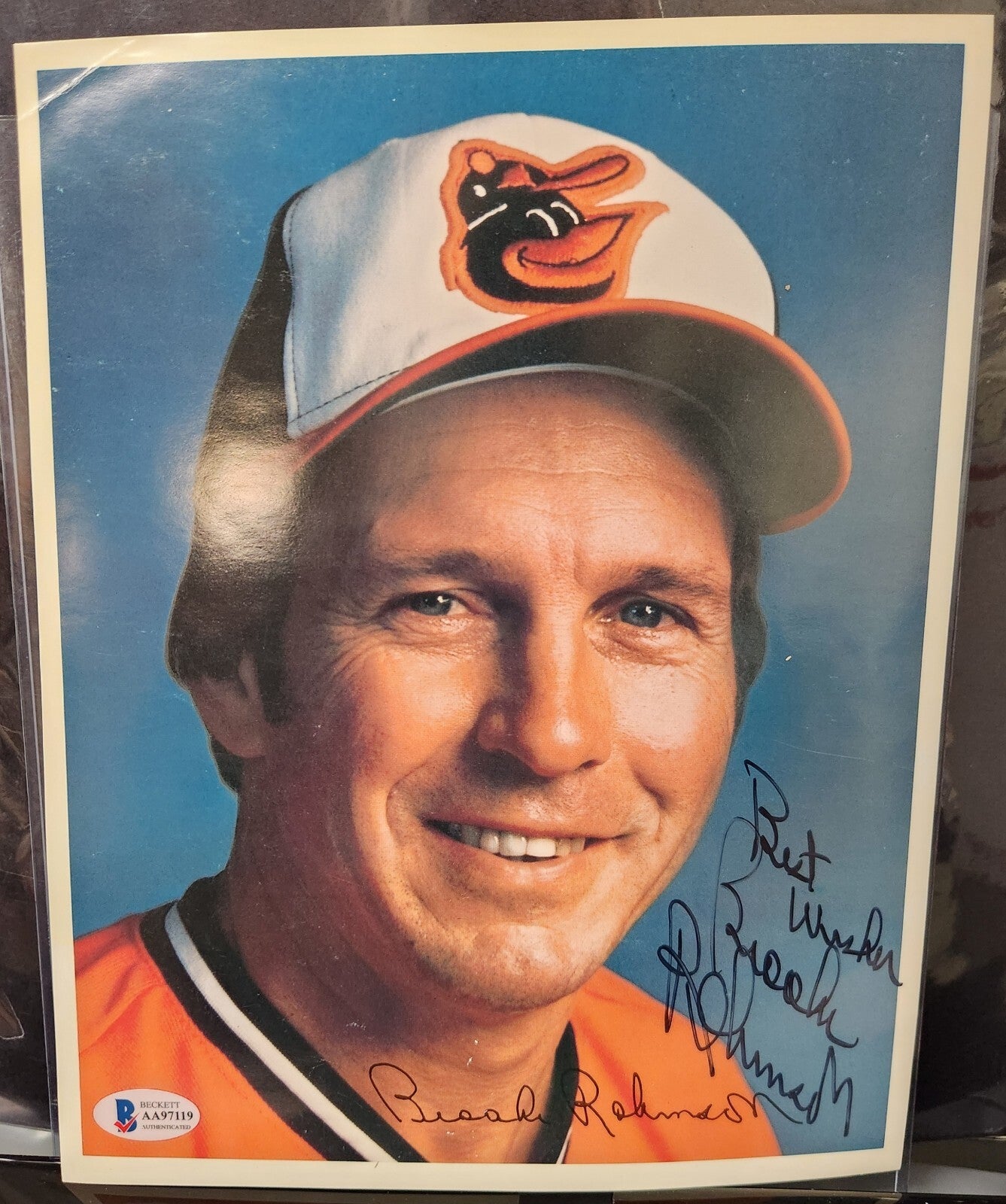 This 8x10 photo features Brooks Robinson, a Hall of Fame baseball player from the Baltimore Orioles. The photo is signed and inscribed by Robinson himself, making it an original and unique piece for any baseball fan and collector. It comes with a Beckett certificate of authenticity, ensuring its authenticity. This photo is a must-have for any Baltimore Orioles fan or baseball enthusiast.