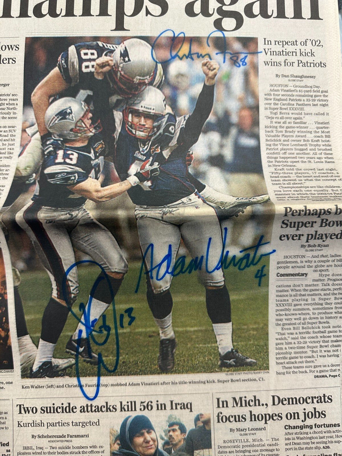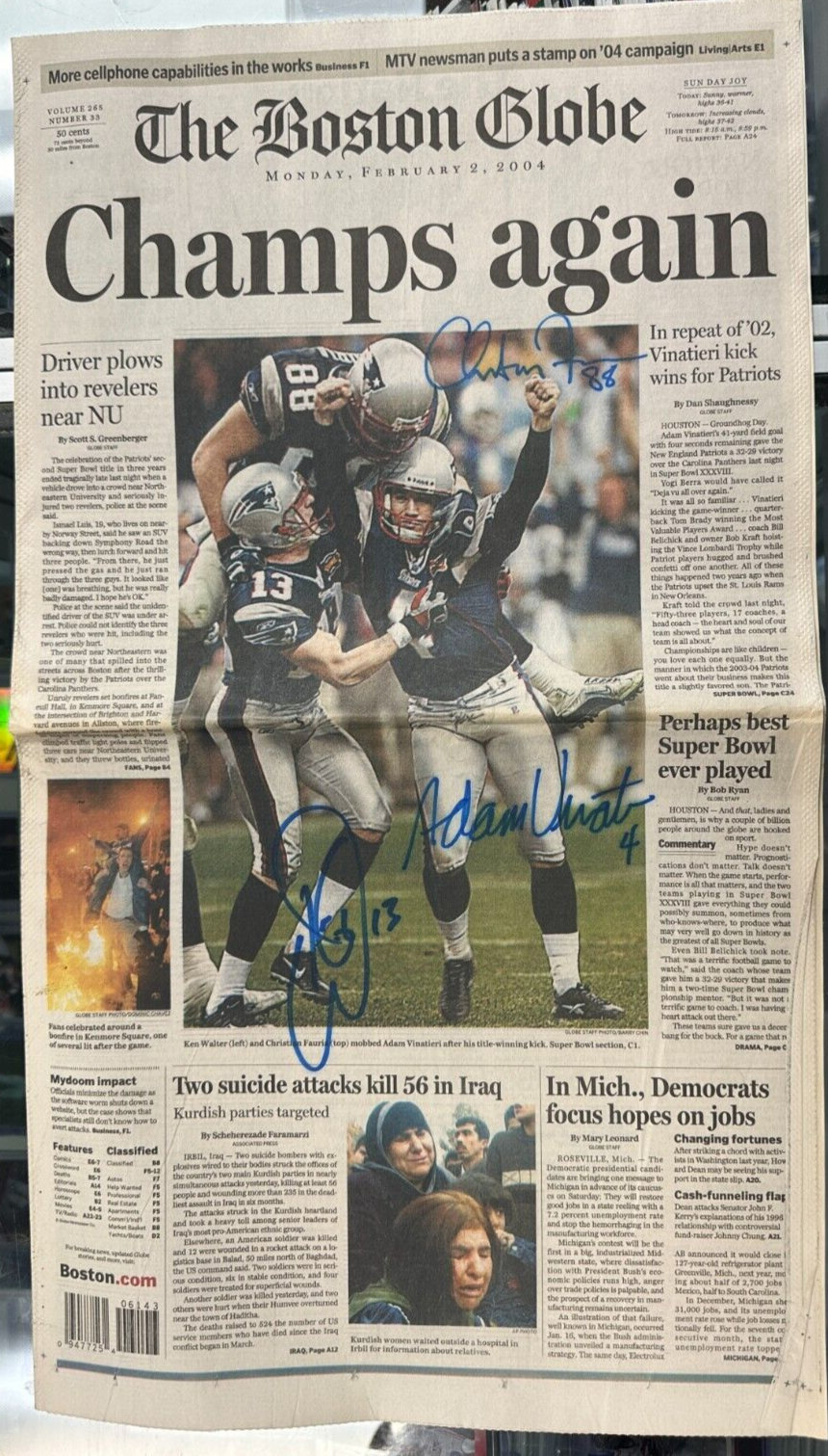 Christian Fauria Adam Vinatieri & Ken Walter Signed Feb 2, 2004 Boston Globe