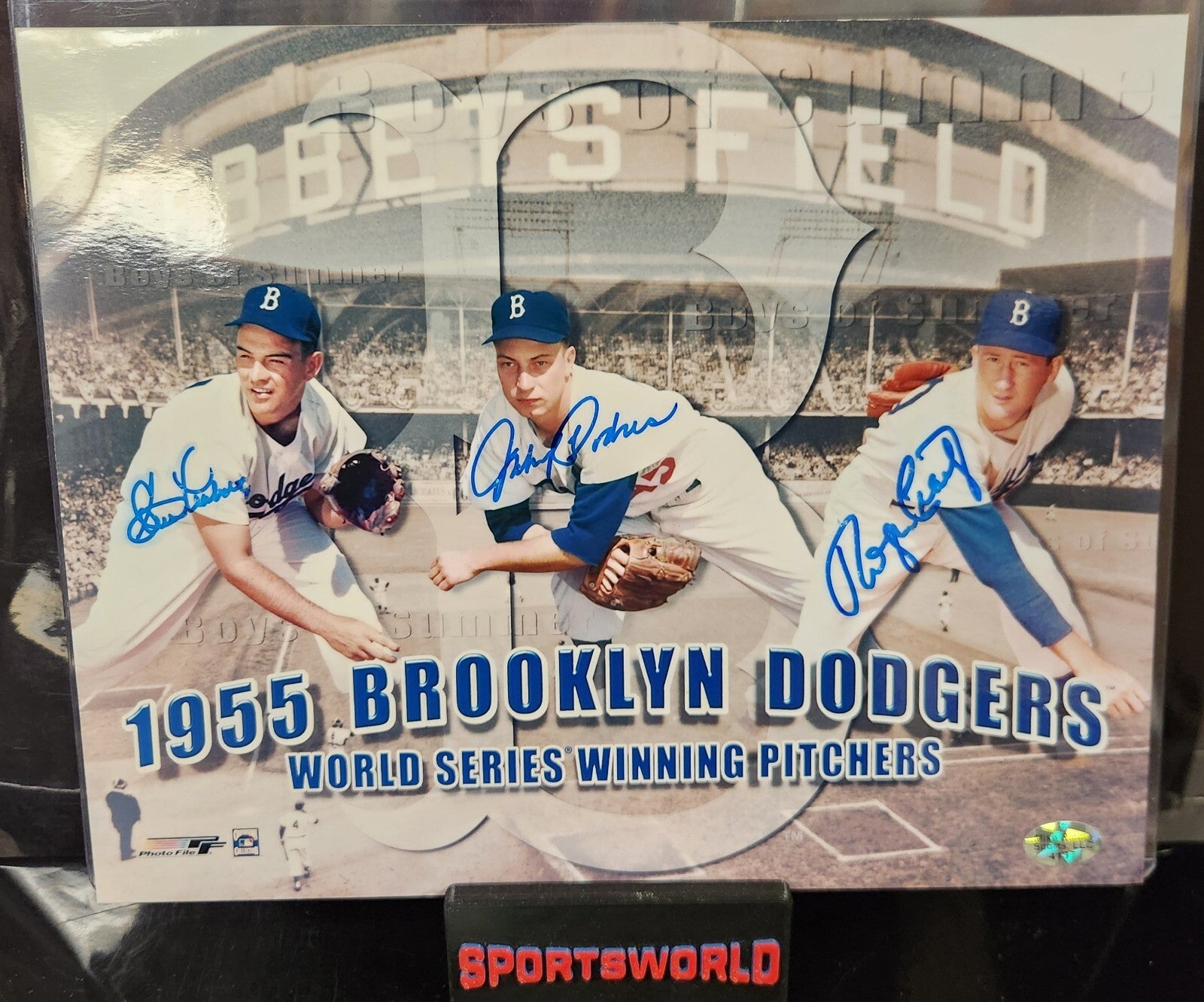 Clem Labine Johnny Podres Roger Craig 1955 Brooklyn Dodgers 8x10 Photo COA