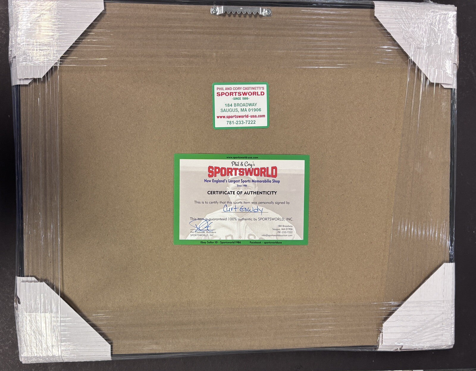 We're offering this 8x10 Photo of Hall of Fame Announcer Curt Gowdy matted & framed along with a beautiful cut signature. It's beautifully matted & framed. It comes with a COA Issued by Sportsworld, New England's Largest Sports Memorabilia Store and his signature is guaranteed to be 100% Authentic. It measures approx. 20" x 16" and we will combine on shipping for similar items!