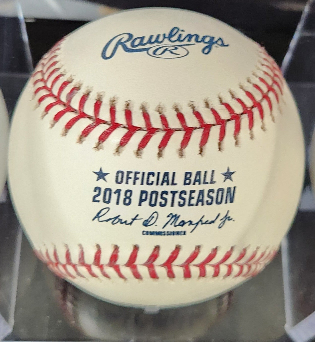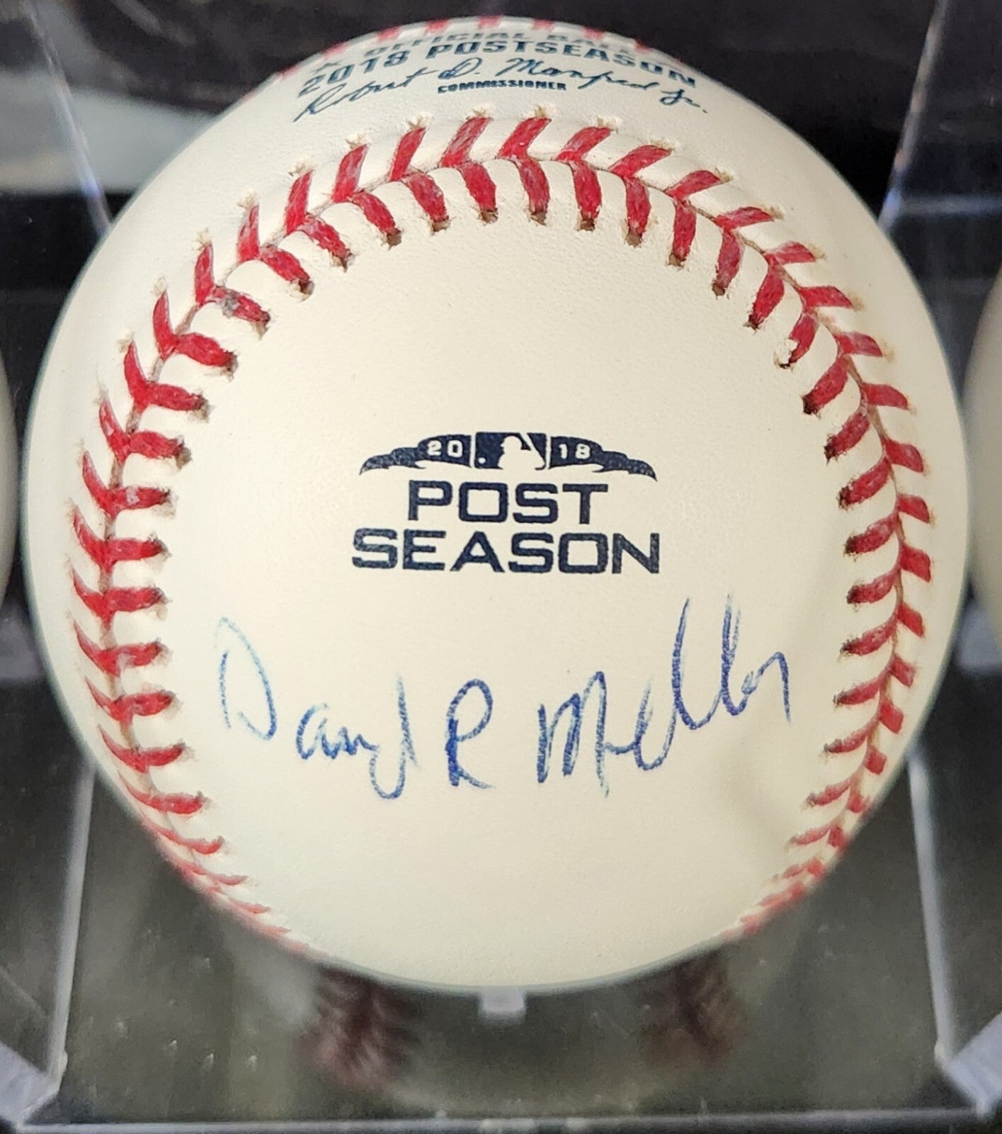 The product is a 2018 Post Season Baseball signed by Dave Mellor, the groundskeeper for the Boston Red Sox. This baseball is an original item with a Certificate of Authenticity (COA) confirming the signature's validity. It is a unique piece of memorabilia for fans of the Boston Red Sox or collectors of baseball items, particularly those interested in the 2018 Post Season.