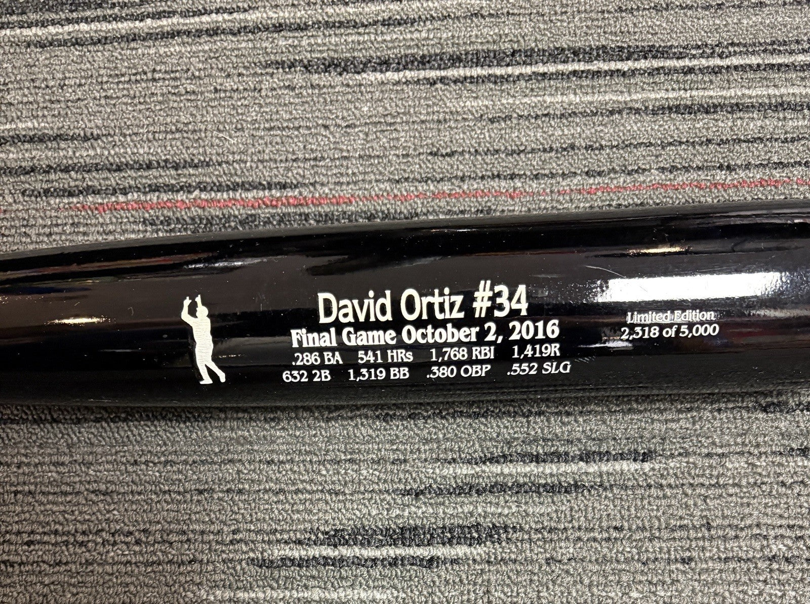 The product is a commemorative bat limited to only 5000 pieces. This collectible item celebrates the career of the legendary Boston Red Sox baseball player, making it a valuable piece for fans of the team and baseball enthusiasts alike. The bat represents a piece of Major League Baseball history and serves as a unique memento of Ortiz's contributions to the sport.