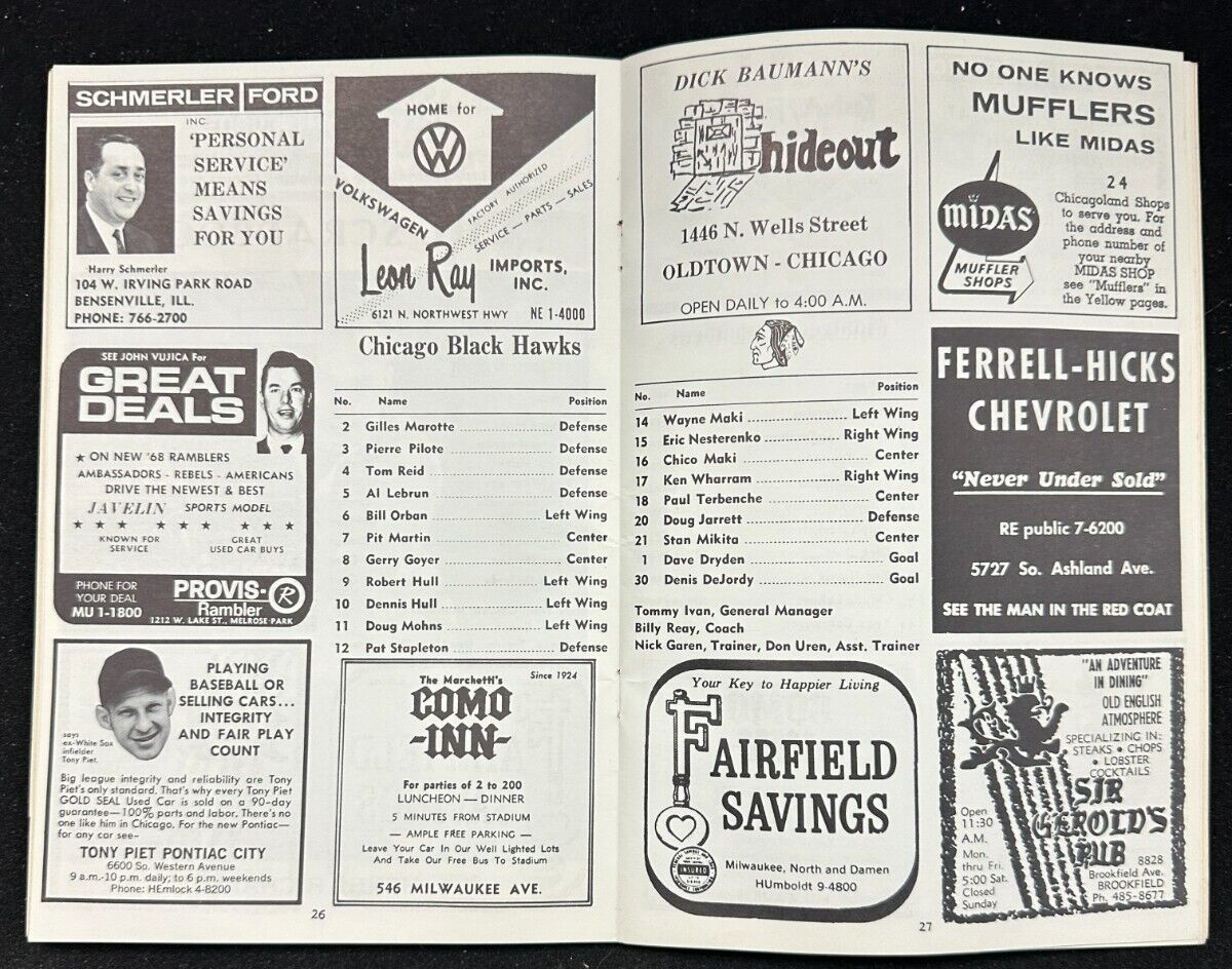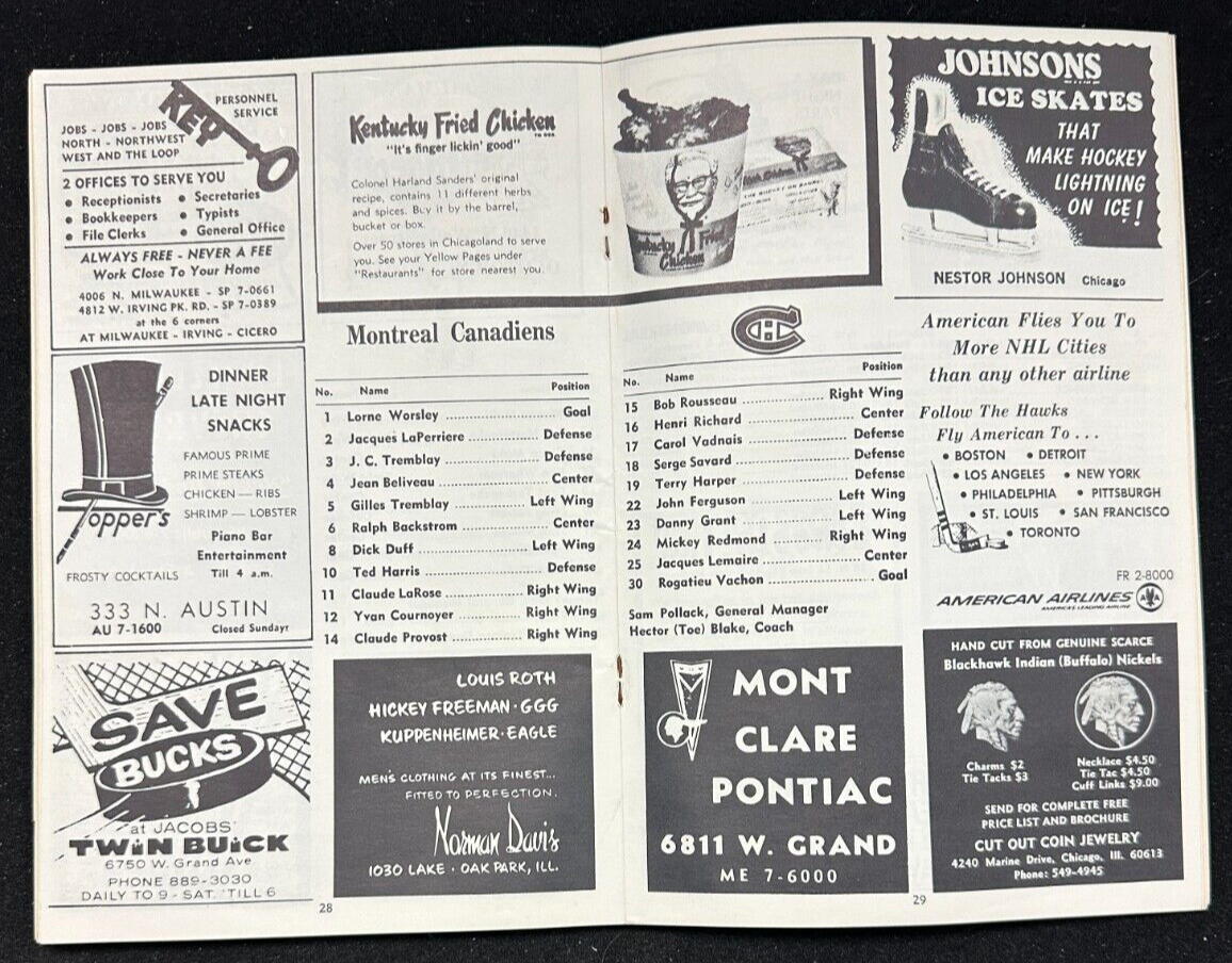 Dec 25, 1967 Chicago Blackhawks & Montreal Canadiens Program NHL