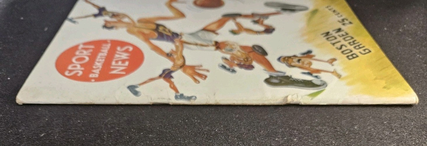 The product is a vintage sports program from December 22, 1949 featuring the Boston Celtics vs. Minneapolis Lakers in basketball. This piece of sports memorabilia likely holds historical significance for fans of both teams, particularly those interested in the career of legendary player George Mikan, who played for the Minneapolis Lakers. The program provides a unique glimpse into the basketball world of the late 1940s and serves as a valuable collector's item for enthusiasts of vintage sports memorabilia.