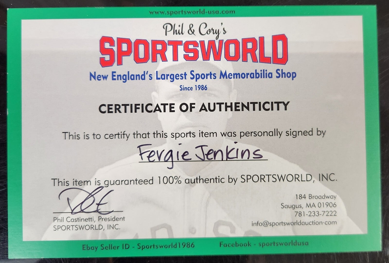 This 8x10 photo features Fergie Jenkins of the Chicago Cubs, Texas Rangers and Boston Red Sox, a legendary player in MLB history. The photo has been signed by Jenkins himself and comes with a certificate of authenticity, ensuring its originality and authenticity. It's a must-have for any baseball fan, especially Cubs fans, and a great addition to any sports memorabilia collection. Get your hands on this rare and unique piece today!
