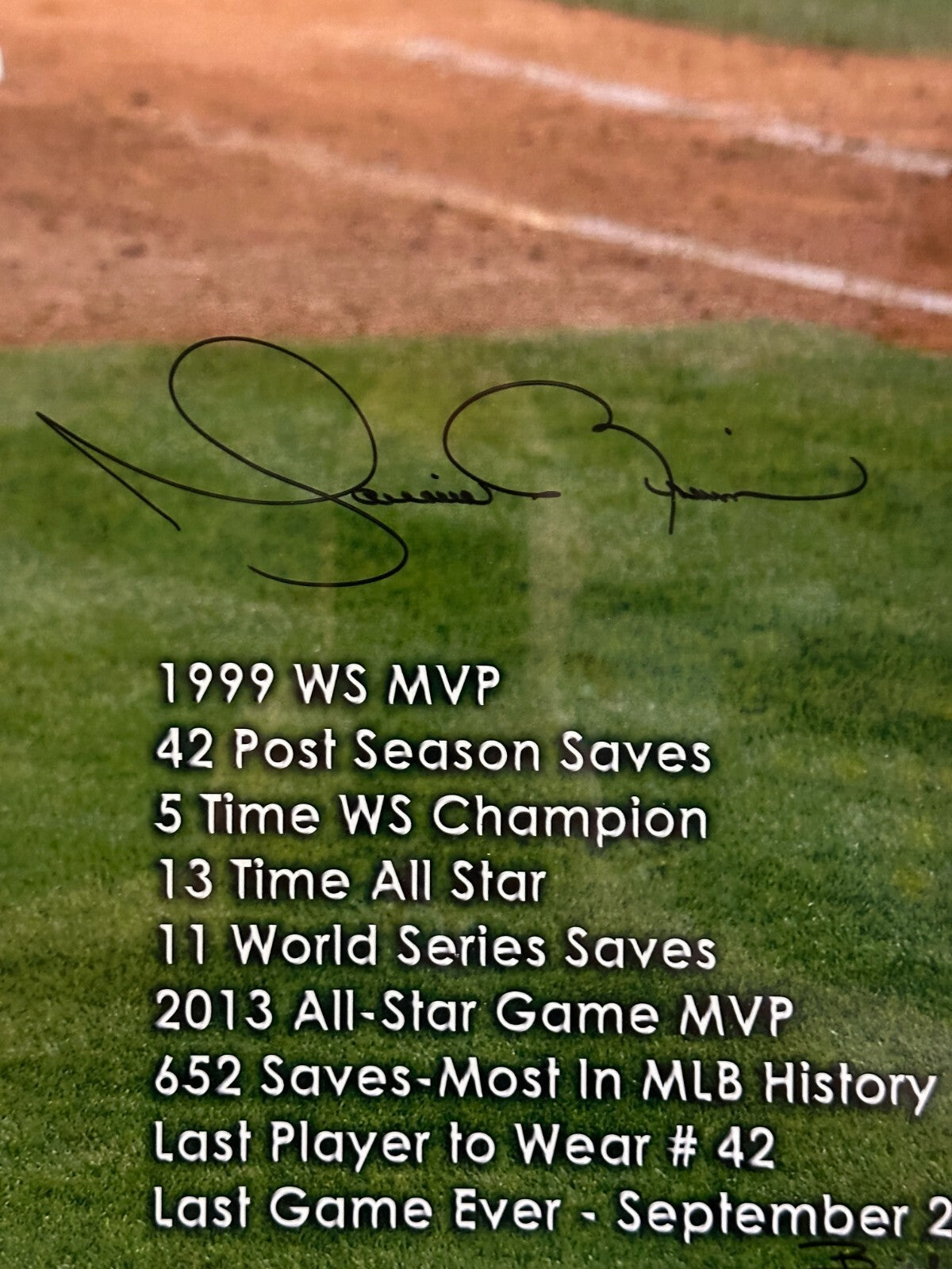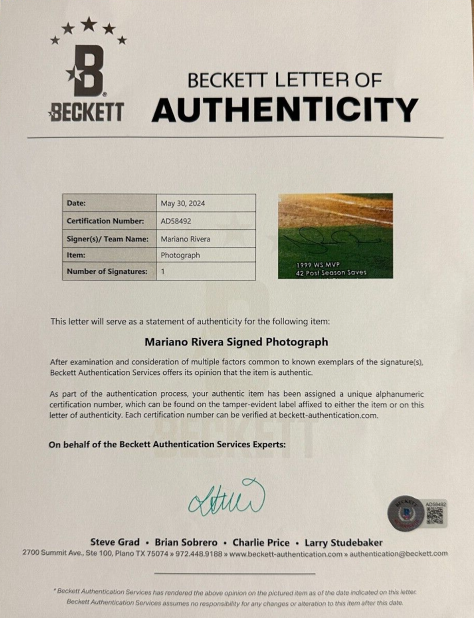 We're offering this Framed 16x20 Photo Titled Exit Sandman Autographed by Hall of Fame Closer Mariano Rivera of the New York Yankees. It's beautifully matted and framed and it lists Mariano career accomplishments. It's a limited edition numbered 42/42, it comes with a Full Letter COA & Hologram Issued by BAS (AD58492) Beckett Authentication Services and is guaranteed to be 100% authentic. We will combine on shipping for similar items!