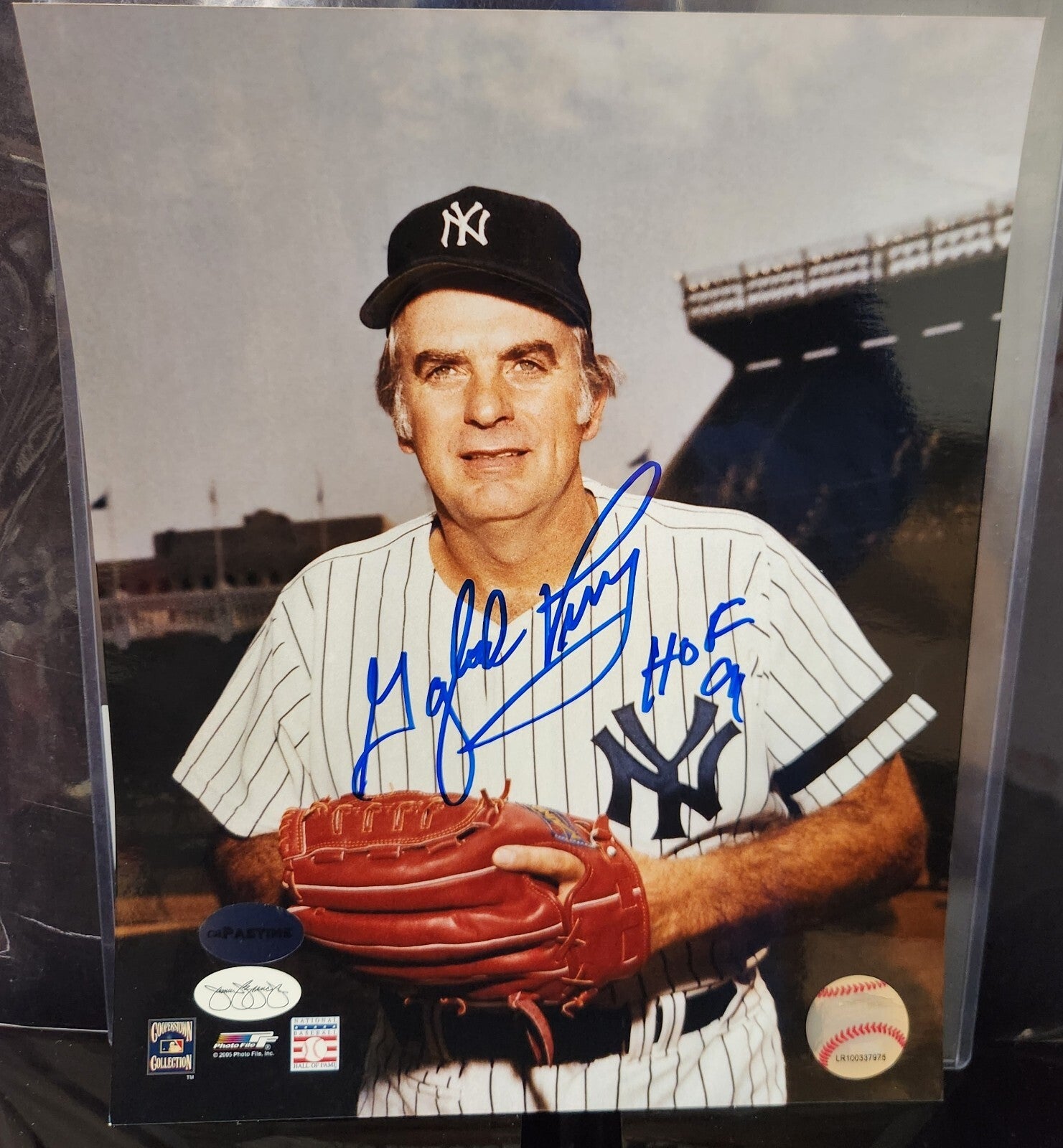 This 8x10 photo is a true gem for any baseball fan! It features Gaylord Perry in his New York Yankees uniform and has been signed and inscribed by the Hall of Famer himself. This is an original and authentic autograph that comes with a JSA COA for your peace of mind.