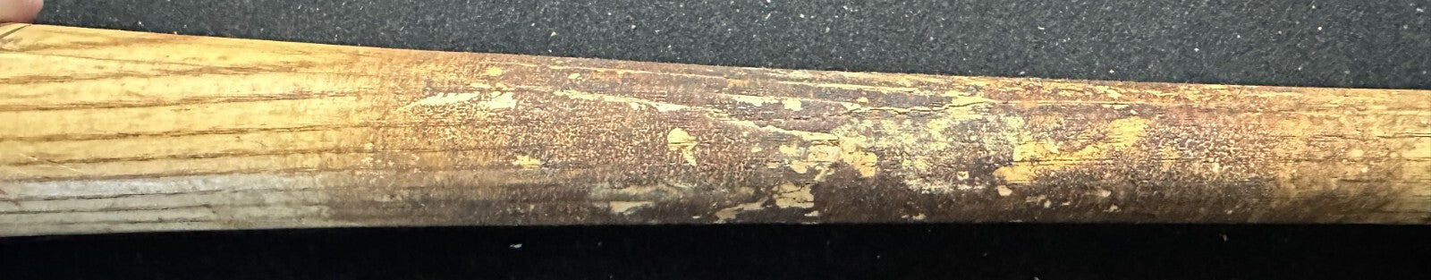 We're offering this Hillerich & Brasby Louisville Slugger Model Bat Used by Boston Red Sox / Milwaukee Brewers Slugger George Scott during the 1970's. It is cracked but has been repaired. it shows a tremendous amount of use with tons of ball marks as well as pine tar along the handle. It came from the personal collection of a long time Red Sox collector and is guaranteed to be 100% authentic.