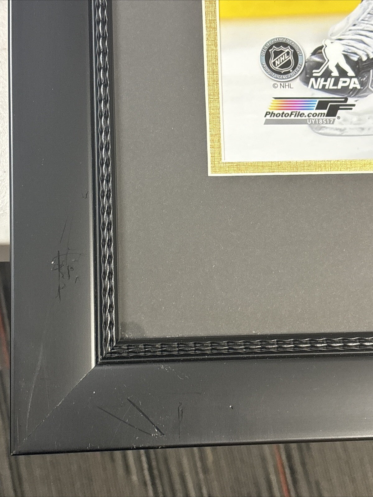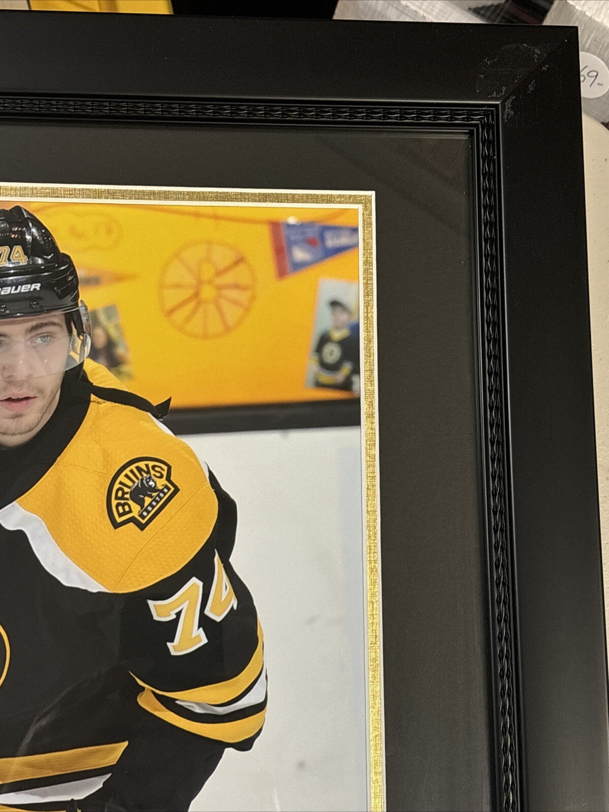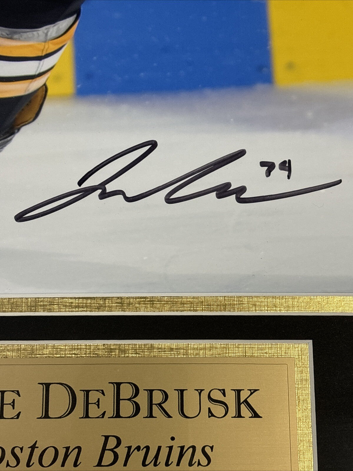 This Jake DeBrusk signed framed 16x20 photo is a great addition for any Boston Bruins fan. The autograph authentication from New England Picture ensures that this photo is an original and not a reprint. This item is perfect for sports memorabilia collectors and fans alike. Frame measures 27x23 and is in good condition with a few small marks.