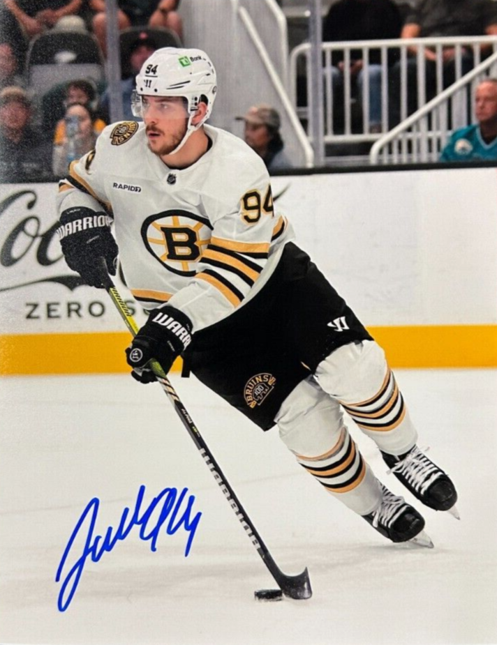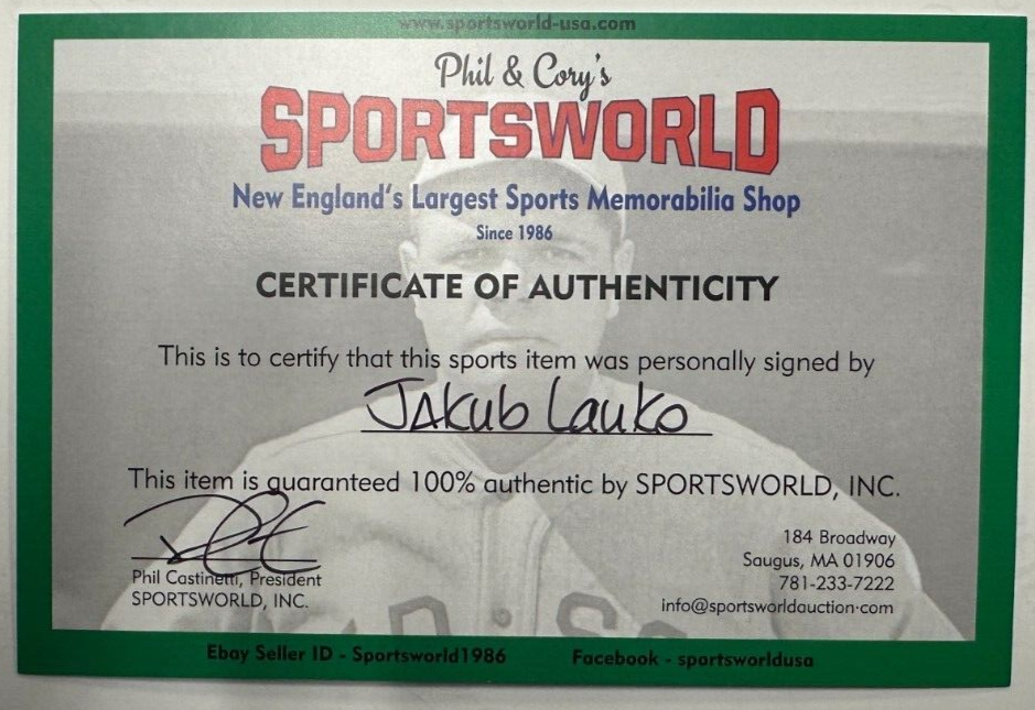 We're offering 16x20 photo autographed by Boston Bruins Center Jakub Lauko. The photo was signed by Jakub during a public signing with our store and is in nm condition. It comes with a COA Issued by Sportsworld, New England's Largest Sports Memorabilia Shop and his signature is guaranteed to be 100% authentic.