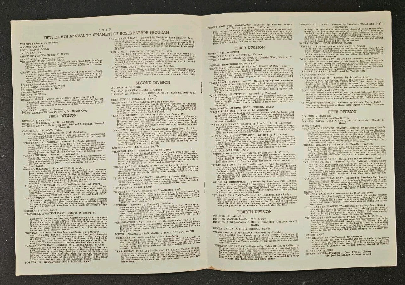 This official program of the January 1, 1947 Tournament of Roses is a rare and valuable collectible for any paper or program enthusiast. It comes with an envelope and is a must-have for any vintage event memorabilia collector. This item is a great addition to any collection and is sure to impress any fan of American history.
