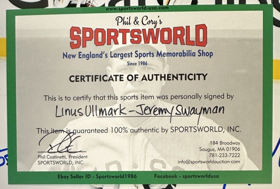 We're offering this Autographed 8x10 photo of the Boston Bruins Goalies Jeremy Swayman & Linus Ullmark doing their famous Goalie hug after the game. It comes with a COA issued by Sportsworld, New England's Largest Sports Memorabilia Store and their signatures are guaranteed to be 100% authentic. We will combine shipping on similar items.