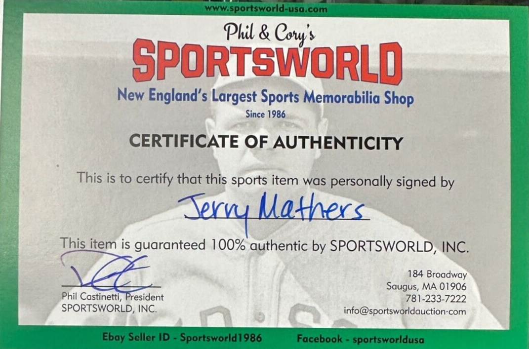 We're offering this 16x20 Photo Autographed by Jerry Mathers of Leave it to Beaver. It comes with a COA Issued by Sportsworld, New England's Largest Sports Memorabilia Store and his signature is guaranteed to be 100% authentic. The photo is in nm condition and, we will combine on shipping for similar items. Jerry signed these photo's during a public signing at out store.