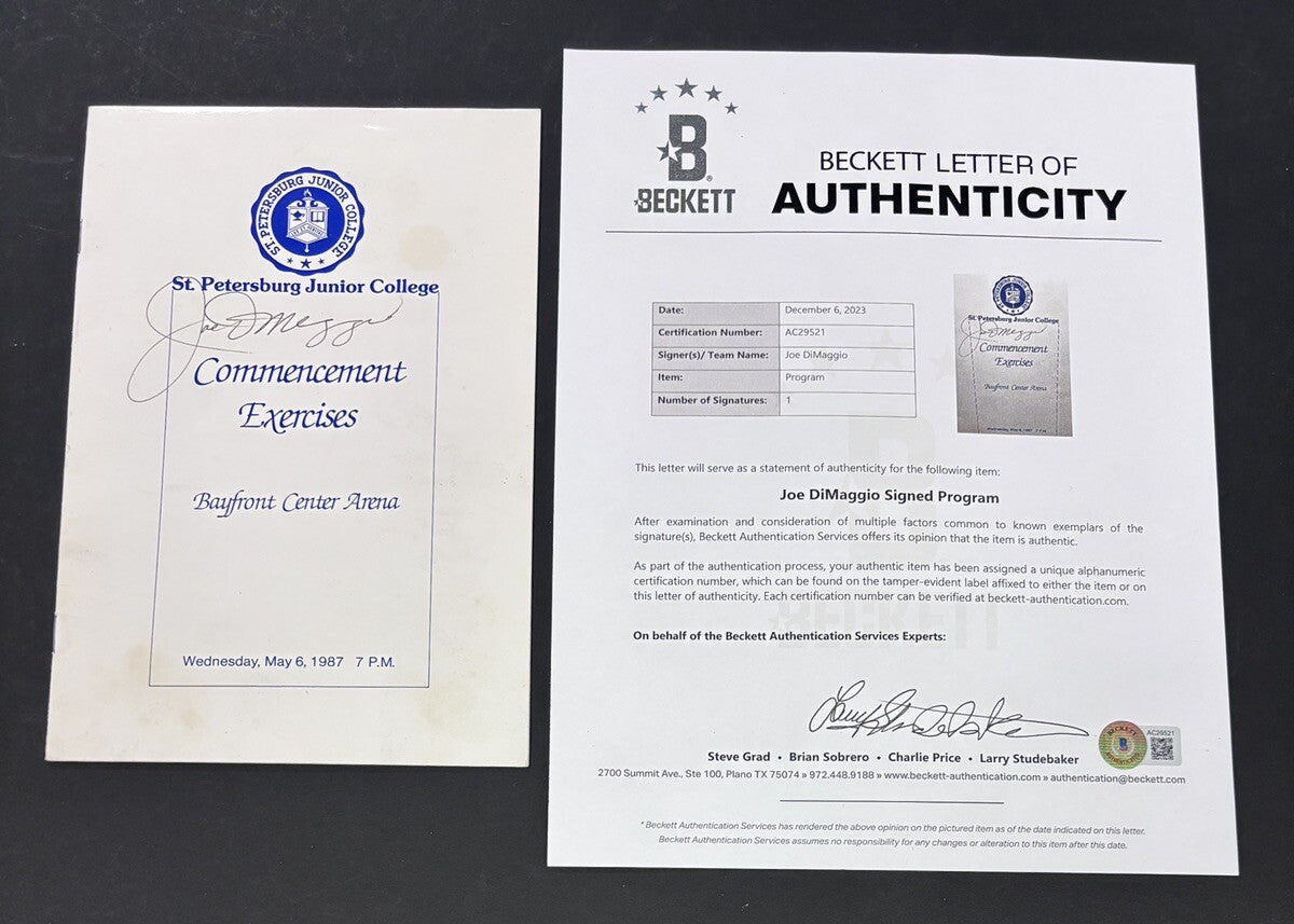 Joe DiMaggio Signed St. Petersburg Junior College Commencement Program Beckett