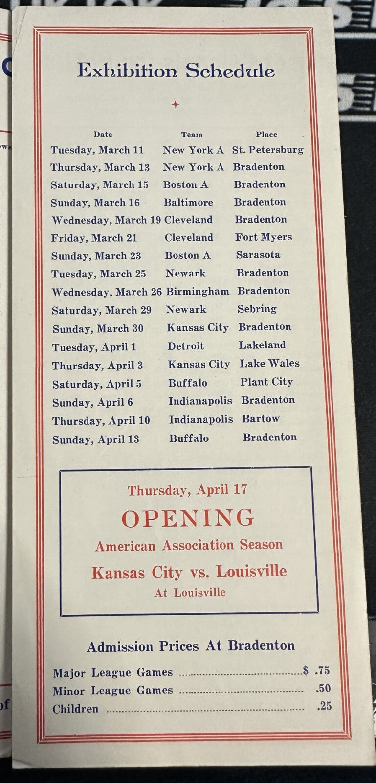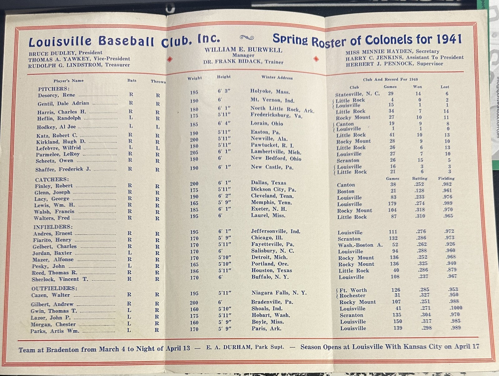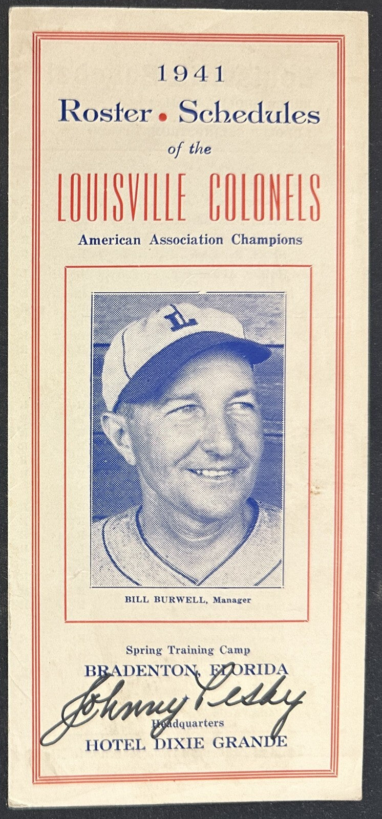 Johnny Pesky Autographed 1941 Louisville Colonels Roster & Schedules