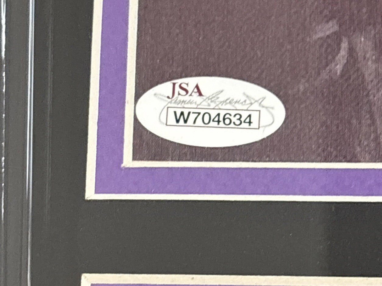 The product is a framed 8x10 photograph of Linda Blair in her role as Regan in the movie "The Exorcist." It is signed by Linda Blair and comes with authentication from James Spence (JSA), confirming the autograph's validity. This original autographed piece of entertainment memorabilia would be a prized possession for fans of the movie and collectors of movie memorabilia.
