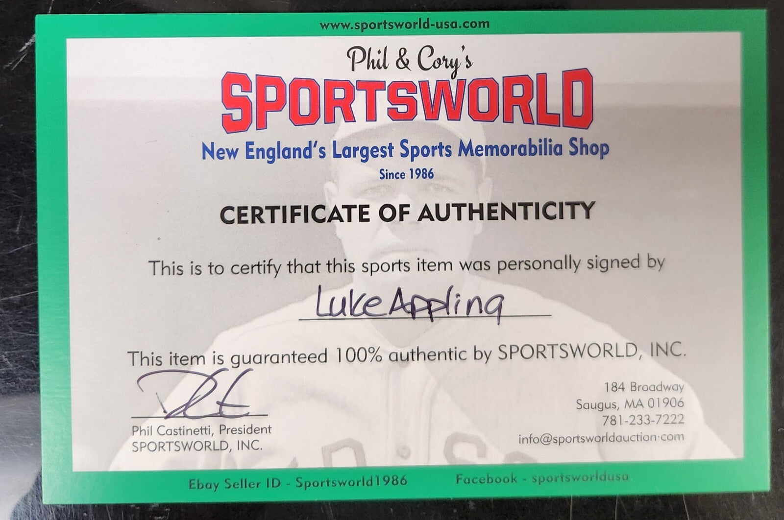 The COA is from Sportsworld- New England's largest sports memorabilia shop. Please refer to our pictures to be sure.