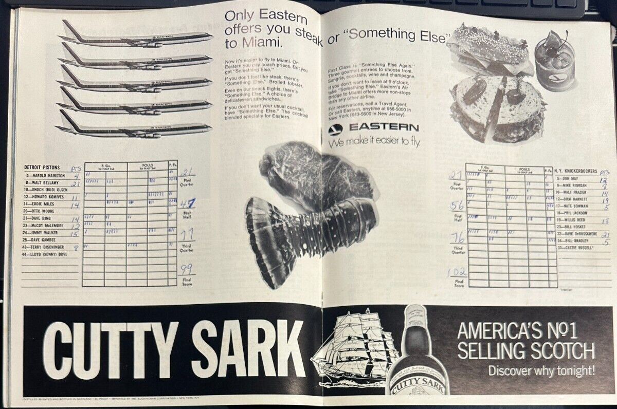 This program from the New York Knicks Vs the Detroit Pistons Game on March 4, 1969 at Madison Square Garden in New York. Inside it has rosters for both teams and is scored as well. The Knicks won the game 102-99 behind. We will combine on shipping for similar items!