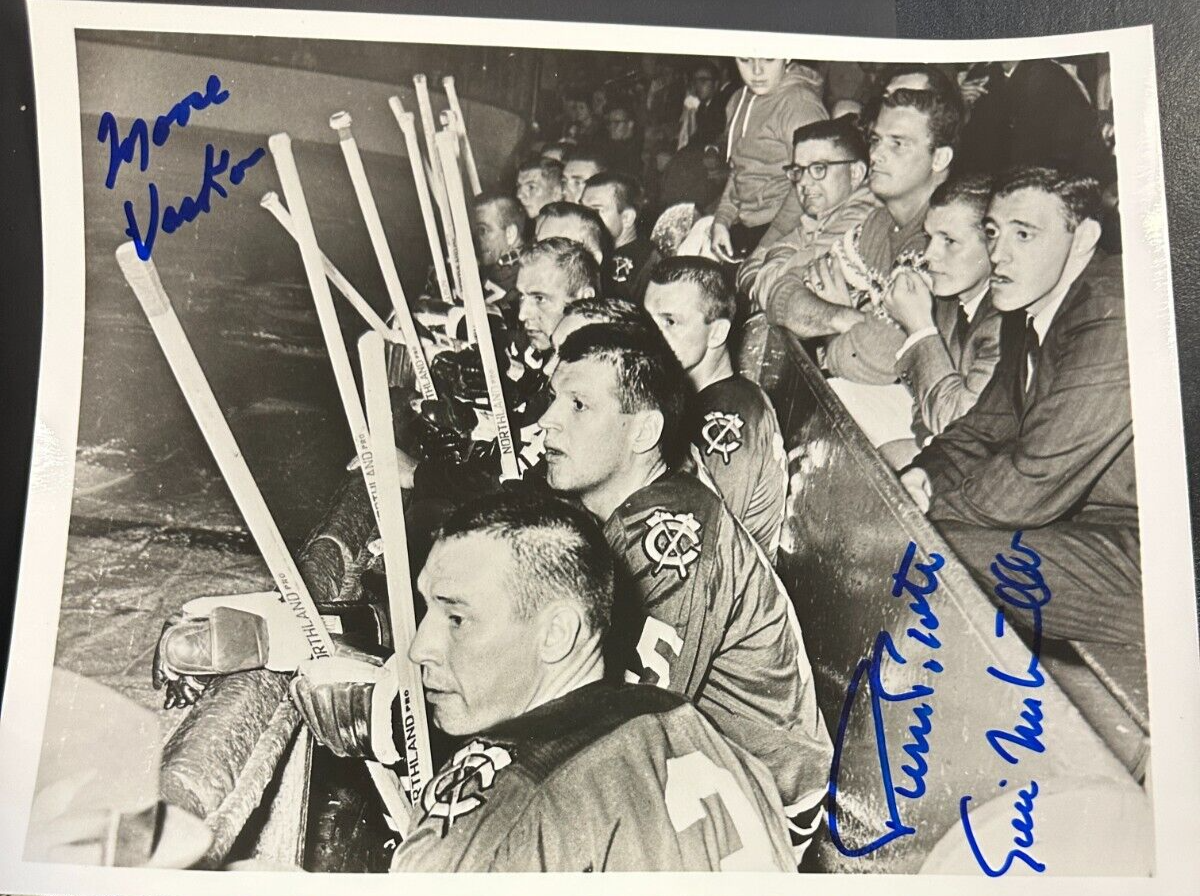 Moose Vasko Eric Nesterenko & Pierre Pilote Autographed 8x10 Photo Blackhawks