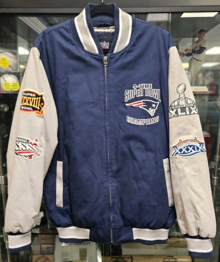 Show your support for the New England Patriots with this stylish jacket! Featuring the team's logo and their impressive record of being 4x Superbowl Champions, this jacket is a must-have for any true fan. Made for comfort and durability, it is the perfect addition to any fan's wardrobe.