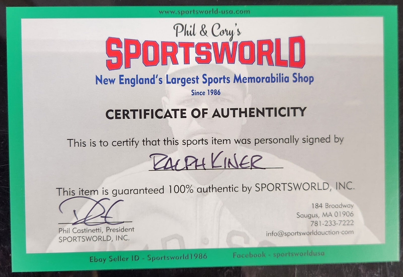 This 8x10 photo features baseball legend Ralph Kiner in his Pittsburgh Pirates uniform. The autograph is original and comes with a COA. It's a perfect addition to any sports memorabilia collection for a fan of the Pittsburgh Pirates or a collector of baseball memorabilia. The photo will be shipped with care to ensure safe delivery.