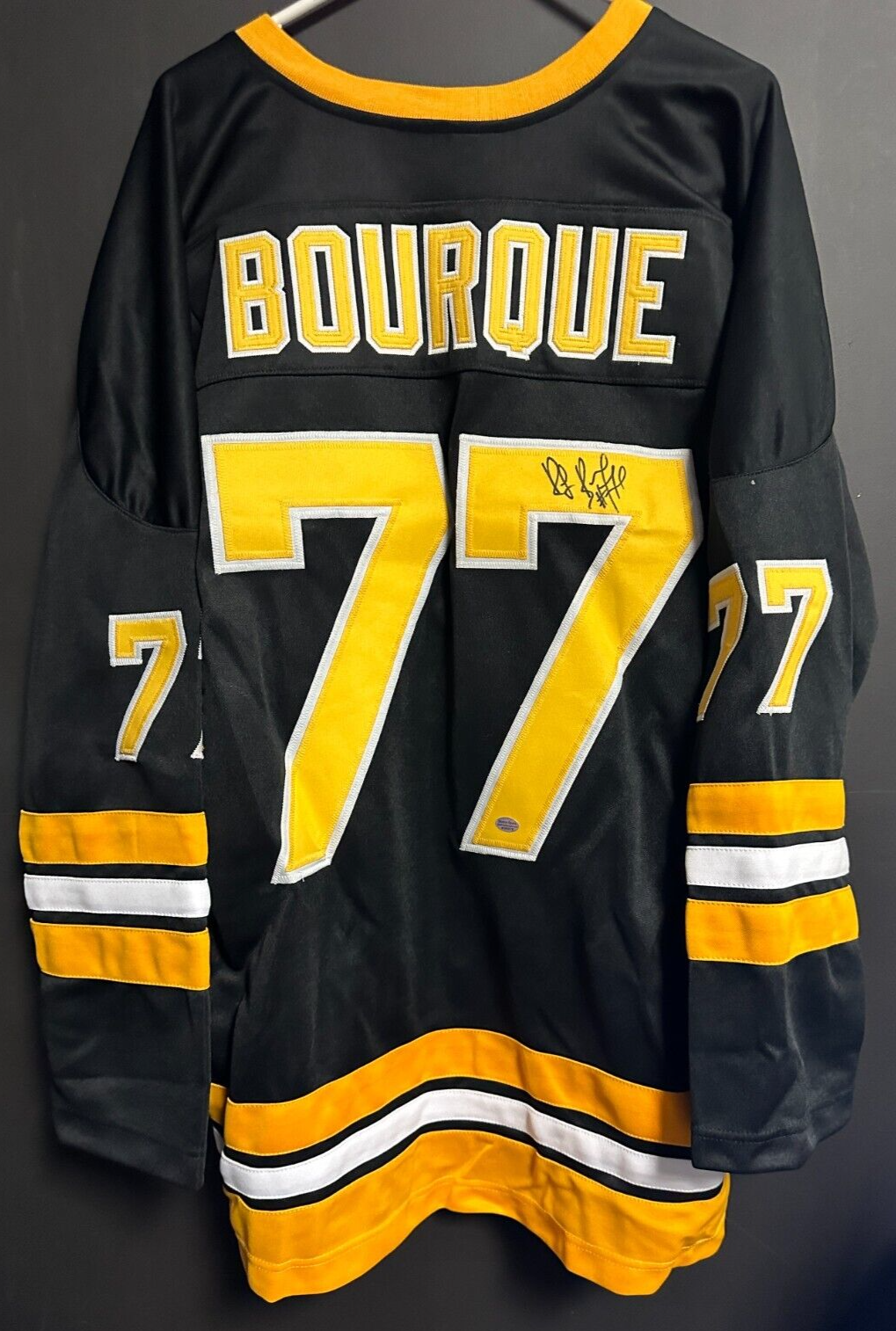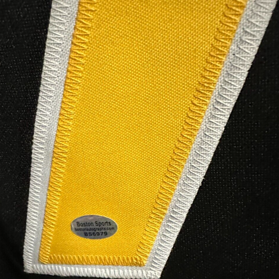 We're offering this Boston Bruins Replica Jersey Autographed by Hockey Hall of Famer & Boston Bruins Team Captain Ray Bourque. The jersey is brand new and is a size XL. It comes with a Hologram Issued by Boston Sports Memorabilia (BS6979) and his signature is guaranteed to be 100% authentic. We will combine on shipping for similar items!