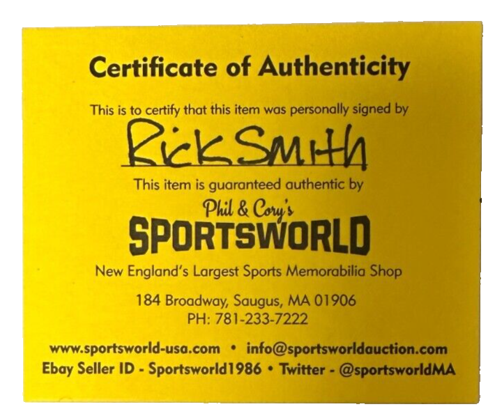 We're offering Washington Capitals Hockey Puck Autographed by former Star Rick Smith. It's in nm-mt condition. It comes with a COA issued by Sportsworld, New England's Largest Sports Memorabilia Store and his signature is guaranteed to be 100% authentic. We do have multiples puck signed by Rick so the puck that you receive might not be the exact puck in the photo. It will be shipped in a plastic display square, and we will combine on shipping for similar items.