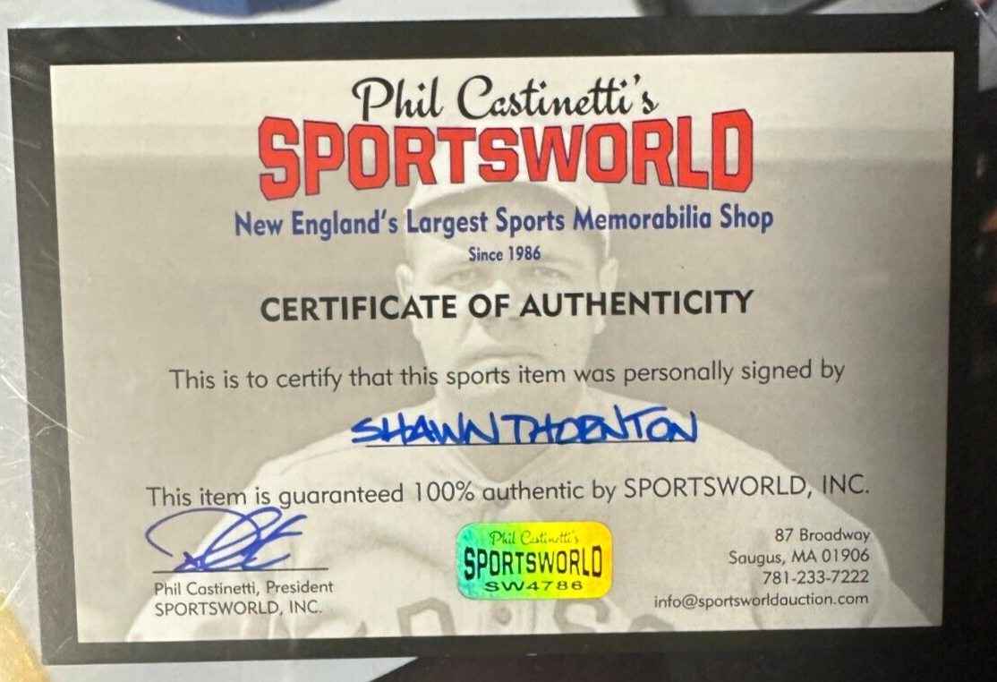 We're offering this 16x20 Photo Autographed by former Boston Bruins Tough Guy Shawn Thornton. It comes with a COA issued by Sportsworld New England's Largest Sports Memorabilia Store and his signature is guaranteed to be 100% authentic. The photo is in nm condition.