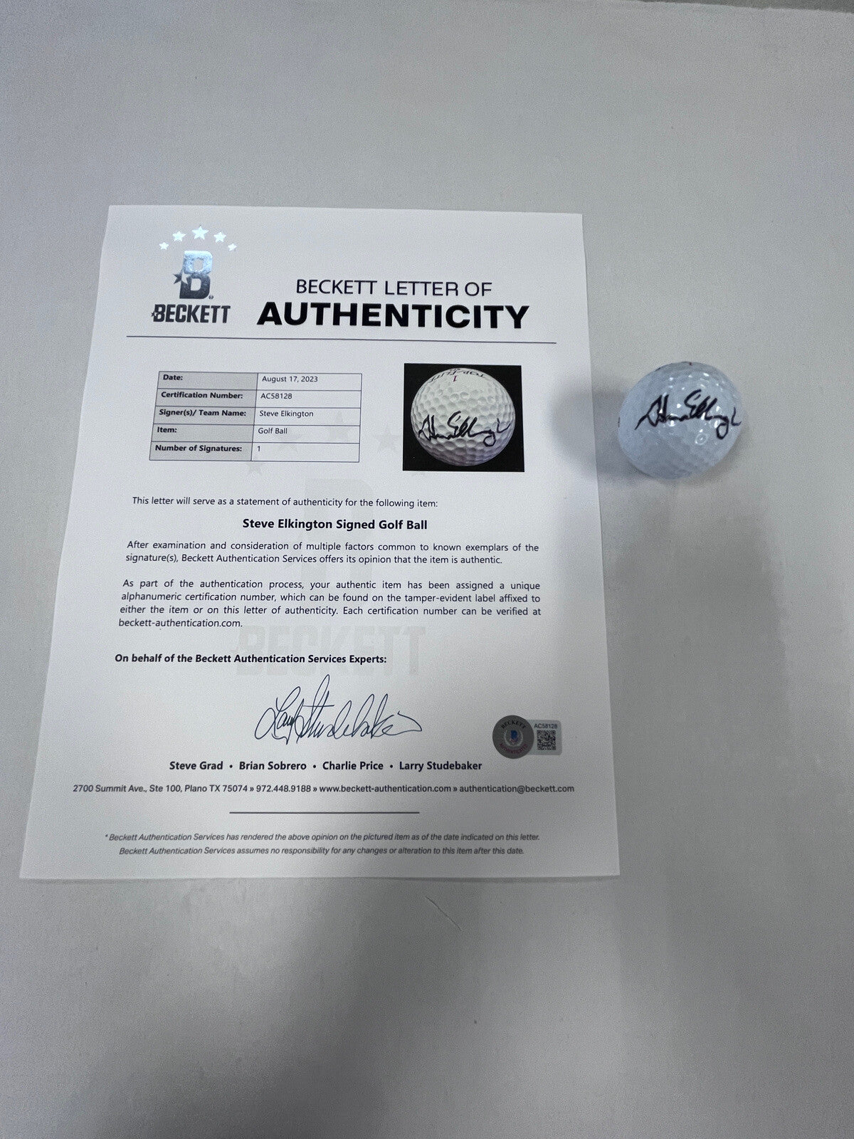 This Steve Elkington autographed golf ball is a must-have for any PGA fan. The ball comes with a cube and a Beckett authentication certificate, proving its originality and authenticity. The signature is signed in bold and clear, making it a great addition to any golf memorabilia collection. Whether you're a fan of Steve Elkington or just looking for a unique piece of sports history, this autographed golf ball is a great choice.