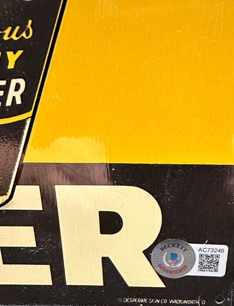 We're offering this reproduction Ted's Creamy Root Beer Sign Autographed by Ted himself. It's in perfect condition and it measures approx. 10" x 15". It comes with a Full Letter LOA & Hologram issued by BAS (AC72346) Beckett Authentication Services and his signature is guaranteed to be 100% authentic. We will combine on shipping for similar items!