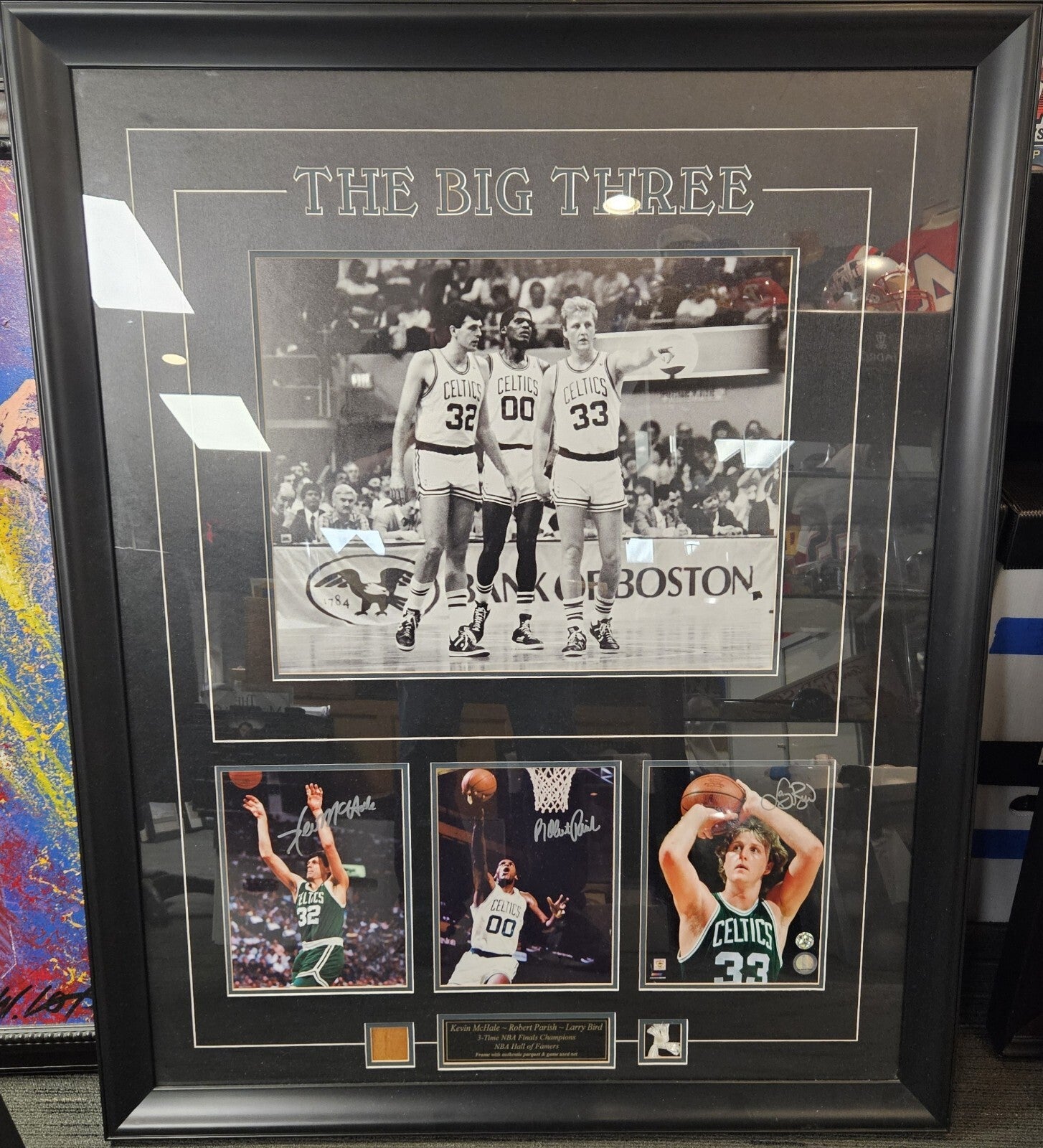 The Big 3 Larry Bird Robert Parish Kevin McHale Signed Custom Framed Photos COA
