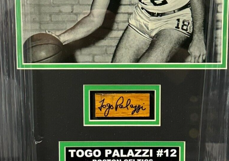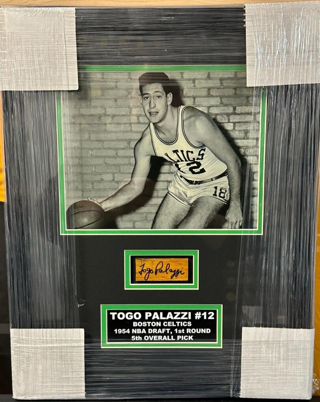 Authentic piece of the Parquet Floor from Boston Garden Autographed by former Boston Celtics Star Togo Palazzi. It's beautifully matted & framed along with an 8x10 photo. It comes with a COA issued by Sportsworld, New England's Largest Sports Memorabilia Shop and his signature is guaranteed to be 100% authentic.