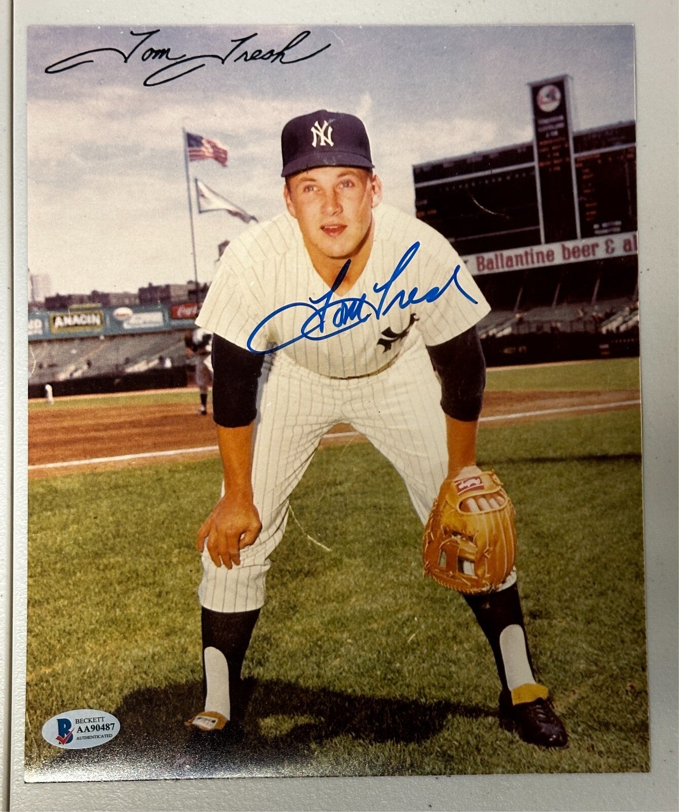 We're offering this 8x10 Photo Autographed by former New York Yankees Outfielder Tom Tresh. It comes with a COA & Matching Hologram Issued by BAS Beckett Authentication Services and his signature is guaranteed to be 100% authentic. This photo was signed by Tom during a private signing in our store.