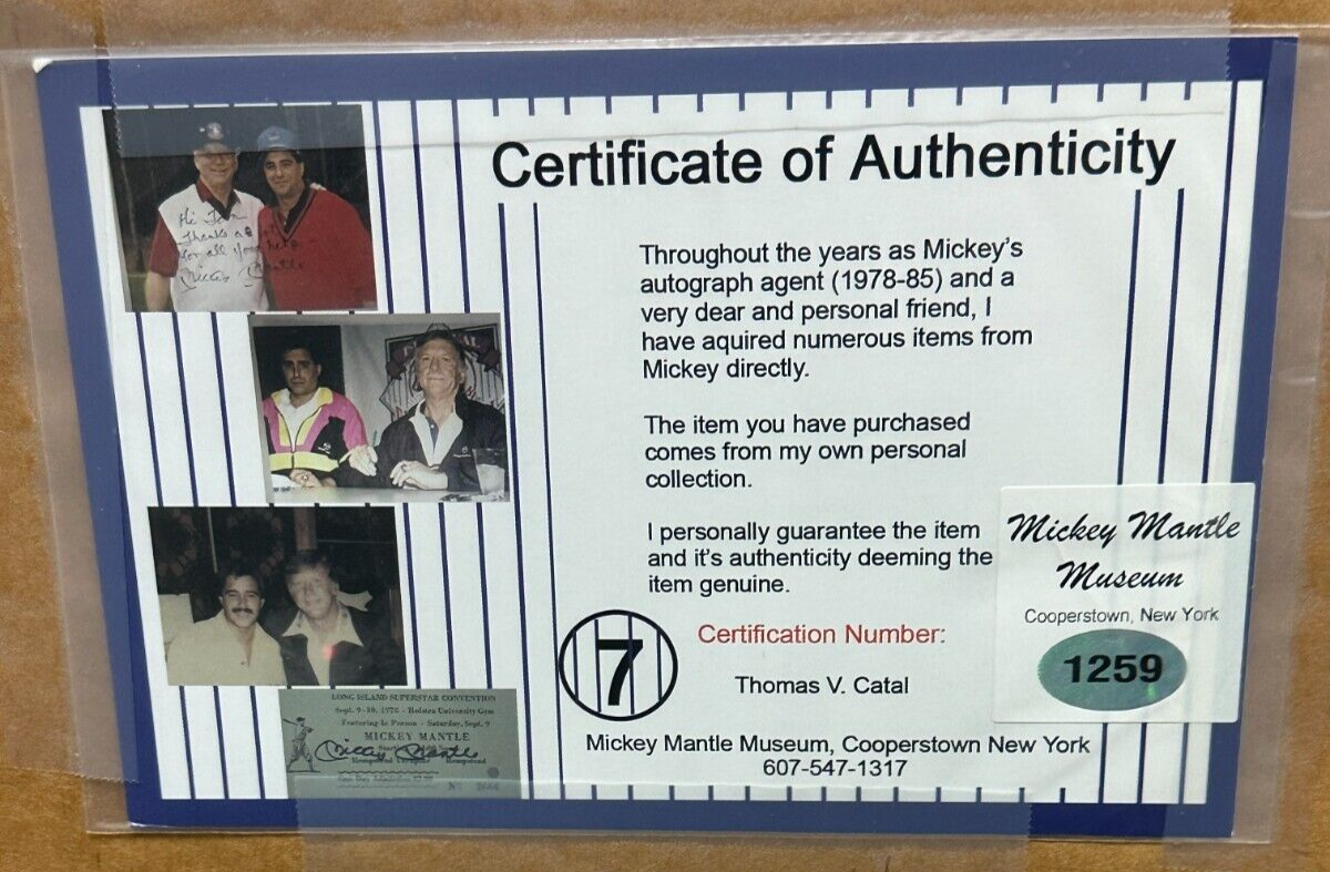 We're offering this Autographed 16" x 20" of New York Yankees Legends Phil Rizzuto & Tony Kubek. It's matted & framed, and it comes with a COA issued by the Mickey Mantle Museum and both signatures are guaranteed to be 100% authentic. The photo is in nm condition (the frame has few dings) and the entire frame measures approx 22" x 28". We will combine on shipping for similar items.