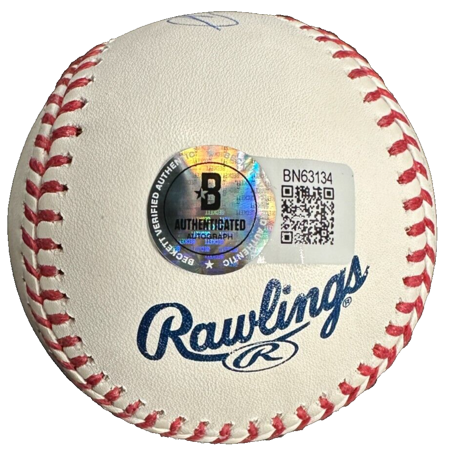 We're offering this Official Major League Baseball Autographed by All-Star 1st Baseman Vladimir Guererro Jr. of the Toronto Blue Jays. It's in nm condition a comes with a hologram issued by BAS (BH63134) Beckett Authentication Services and his signature is guaranteed to be 100% authentic. The ball will be shipped in a plastic display cube, and we will combine on shipping for similar items!
