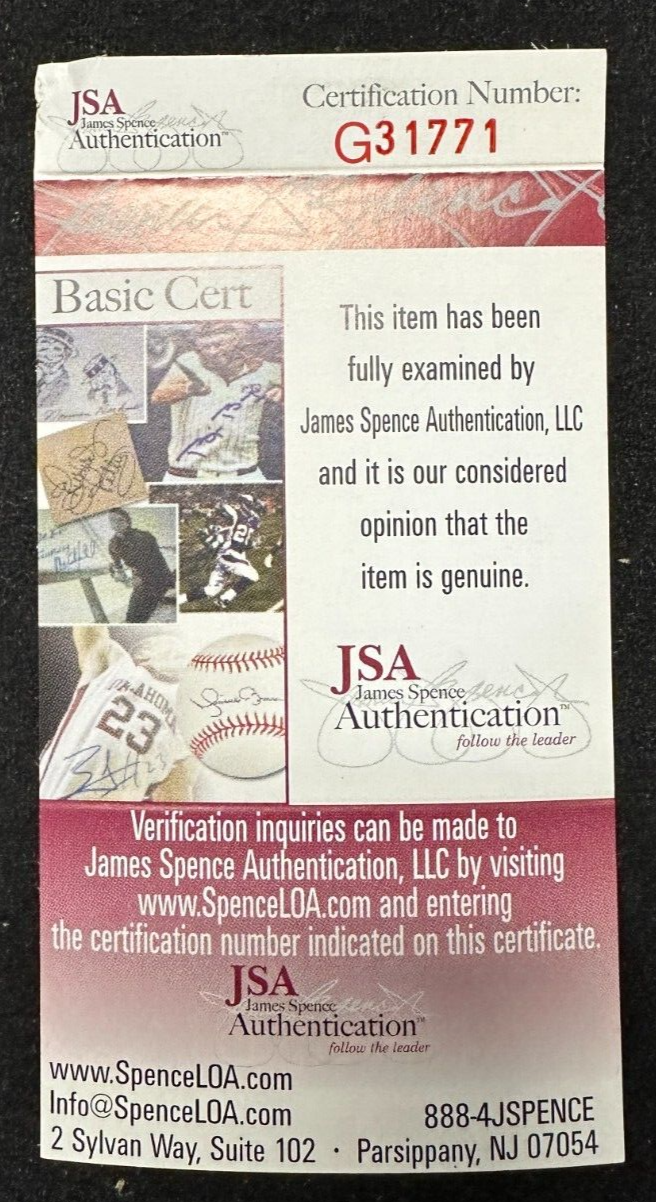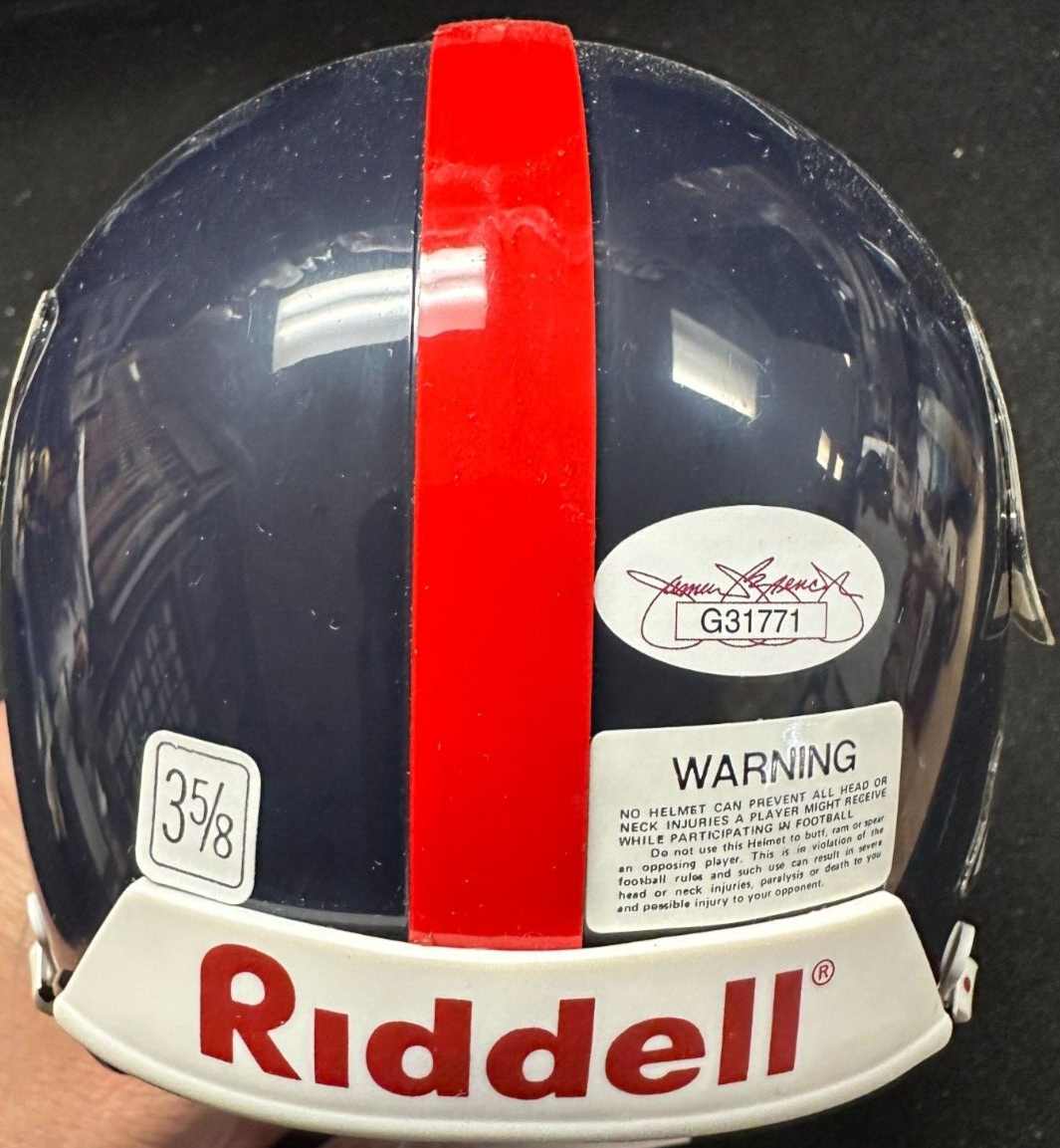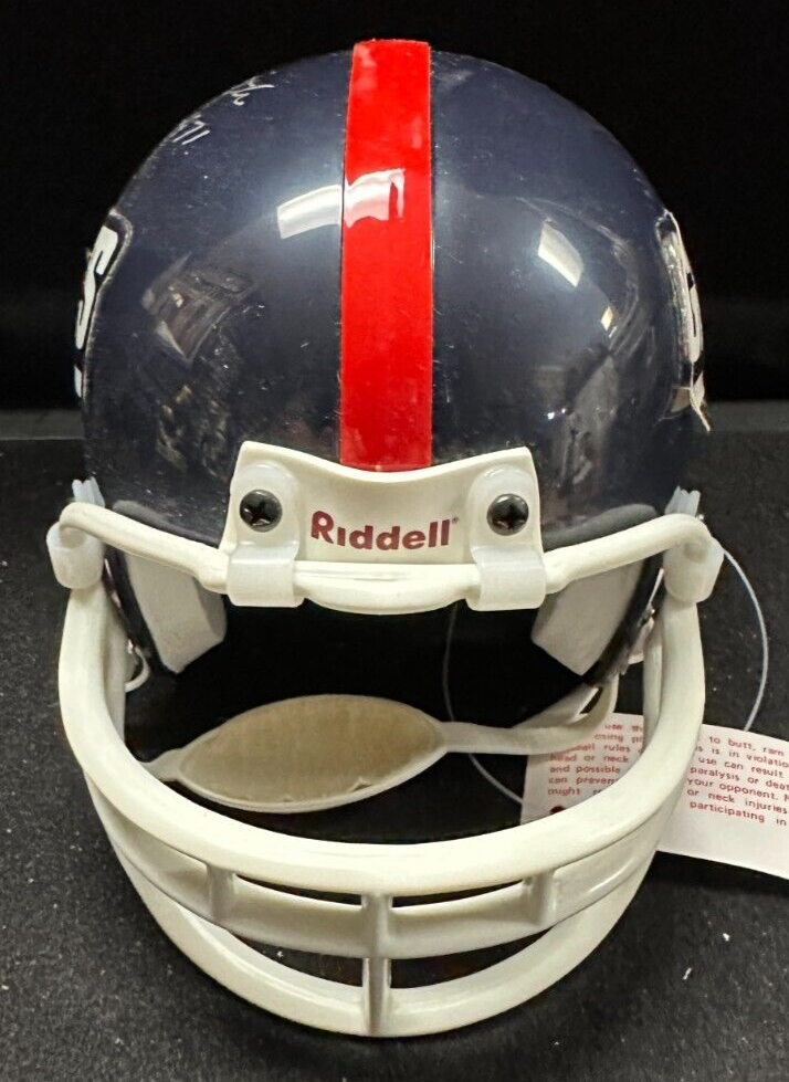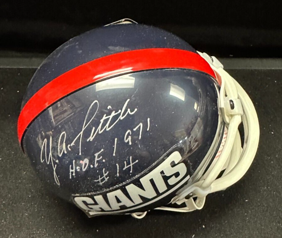 We're offering Riddell New York Giants Mini Helmet Autographed & Inscribed with "HOF 1971 & #14" by Pro Football Hall of Fame Quarterback Y.A. Tittle. It's in nm condition and, it comes with a COA & Matching Hologram Issued by JSA Authentication (G31771) and his signature is guaranteed to be 100% authentic. We will combine on shipping for similar items.